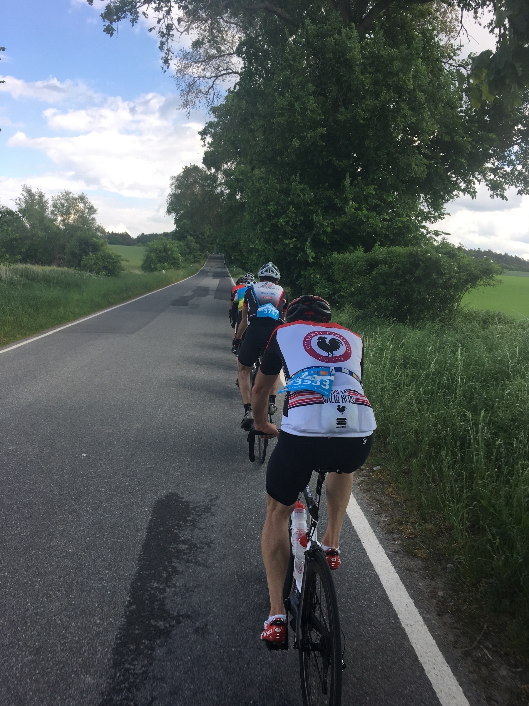 Nach dem vierten Depot fuhr ich, frisch aufgetankt mit leckeren Nudeln, ca. 30-33 km/h als ich auf eine Gruppe traf. Sie fuhren nur ein ganz klein wenig langsamer als ich, aber bremsen wollte ich auch nicht. Also zog ich, wie so oft an diesem Tag, vorbei und beachtete sie nicht weiter. Keine zwei Kuppen später kamen sie aber wieder an mir vorbei. Wieder in etwa diesem Tempo wie ich selbst.